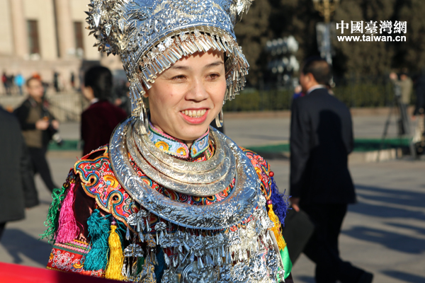 少數(shù)民族代表著民族服裝參會(huì)。(中國(guó)臺(tái)灣網(wǎng) 王思羽 攝)