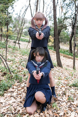 日本學(xué)生妹持槍萌照臺灣爆紅,海量美圖超越界。(臺媒圖)