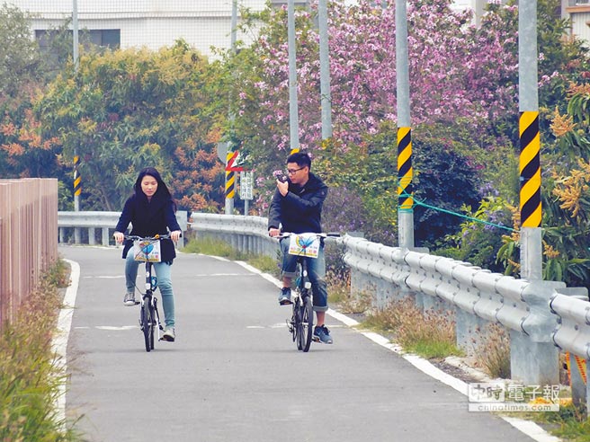 愈來愈多的大陸游客到臺南市騎自行車。(圖片來自臺媒)
