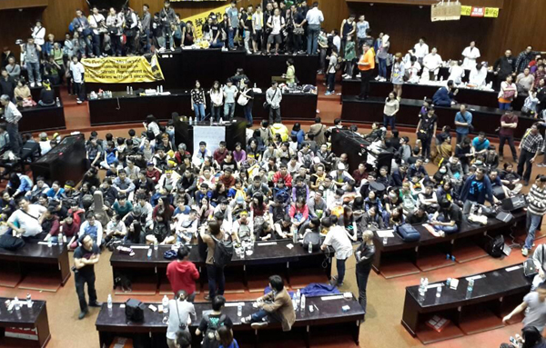 抗議學(xué)生繼續(xù)“霸占”臺(tái)灣立法機(jī)構(gòu)議事堂。(圖片來(lái)源:臺(tái)灣今日新聞網(wǎng))