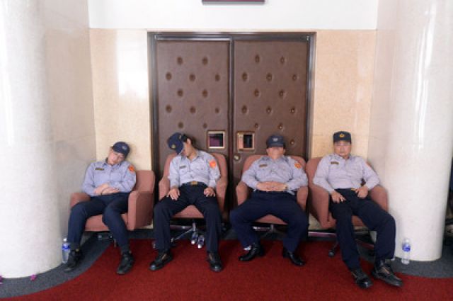 反服貿(mào)占領(lǐng)“立院”,警察累壞了。(臺(tái)媒圖)