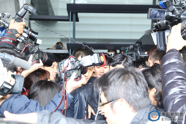 金秀賢遭媒體、粉絲淹沒,臉上表情鎮(zhèn)定。(圖片來自臺(tái)媒)