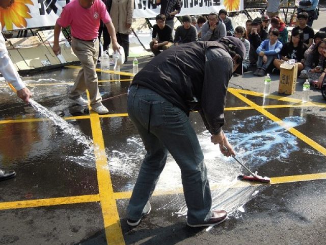 消防局表示,該名50多歲的中年男子,在上午8時47分,于濟南路一段(開南工商前)突然拿出一瓶汽油往自己身上淋下去,消防隊趕到時,該名男子已遭警方制伏,據現場擔任糾察隊的大學生蔡承諺表示,男子原本坐在對向人行道上,突然從隨身包包拿出一瓶汽油,沖到路口在警方面前大喊“我要自殺”。