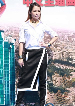 蕭亞軒出席電影《蜘蛛人驚奇再起2:電光之戰》中文主題曲記者會。(臺媒圖)