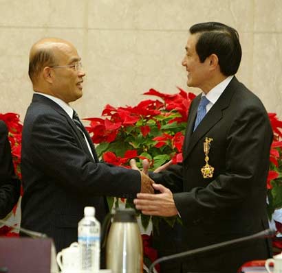 據報道,兩人先禮后兵,但火氣愈來愈大,從一開始客氣的“您您您”,后來都變成不顧禮貌的“你你你”。馬英九重申立場,蘇貞昌馬上吐槽:“少在那邊十六字箴言了”;蘇貞昌說自己不是來吵架的,馬英九也反譏“我也沒有要和你吵架”。(中國臺灣網 高旭)