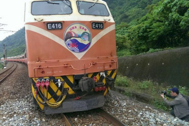 臺灣火車撞上一米落石,車上400名旅客皆平安。(臺媒圖)