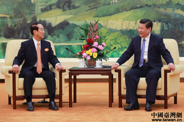 中共中央總書記習近平7日上午在北京人民大會堂會見了親民黨主席宋楚瑜一行。(中國臺灣網(wǎng) 于斯文 攝)