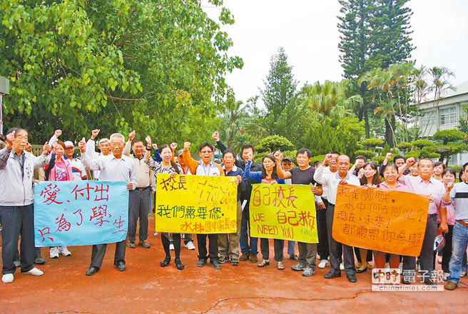 近百人到水林初中慰留,強調悲劇令人心痛,但好人才不應因此離去。(圖片來源:臺灣中時電子報)