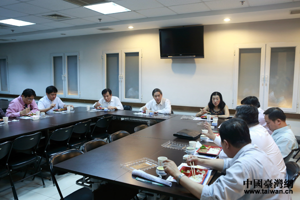 張志軍與臺商一起吃便當。(中國臺灣網 于斯文 攝)