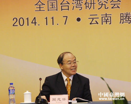 全國臺灣研究會執行副會長兼秘書長周志懷在開幕式上致辭。(中國臺灣網 李杰 攝)