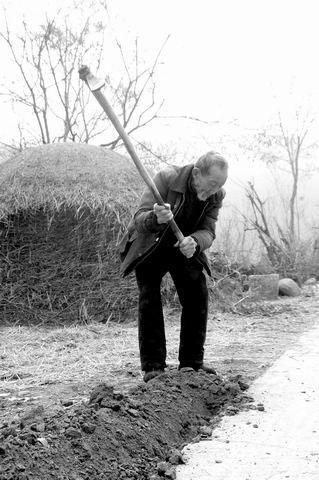 見到劉志光老人時,老人正揮鎬在自家房前挖自來水管道。原來,村里對原有老化的自來水管道進行改造,老人閑不住就自己干起來。如果不是同行的人介紹,誰也不敢把他當成年逾百歲的老人。