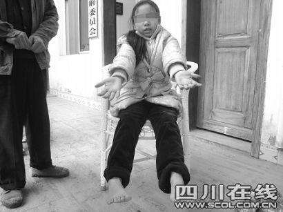在桃坪鄉(xiāng)小學(xué)的操場上,劉雅同學(xué)和其他小朋友一樣,跑步、打球、跳橡皮筋,一點(diǎn)看不出“異!;可當(dāng)這個(gè)小女孩擼起袖子和褲管,讓旁人仔細(xì)看她的雙手、雙腳時(shí),人們往往會(huì)大吃一驚:每個(gè)手腳都長著“六指(趾)”,就是說她比普通人多了4根指(趾)頭;尤其是右手的第六根指頭與其他指頭的方向相反,是倒著長的,而其他的“六指(趾)”則順著長出來的。