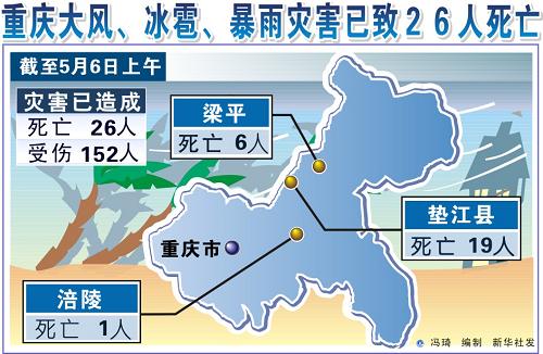 圖表:重慶大風、冰雹、暴雨災(zāi)害已致26人死亡。新華社發(fā)