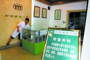 張悟本所在的“中研健康之家”,擺出了告示,稱(chēng)非醫(yī)療機(jī)構(gòu)。記者 孫純霞 攝