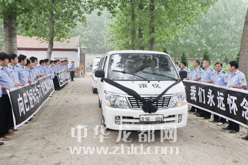 當(dāng)日9時(shí)許,追悼會(huì)開始,沈丘縣殯儀館大廳哀樂(lè)低旋,莊嚴(yán)肅穆,氣氛凝重,挽聯(lián)低垂,全體人員集體肅立、默哀。“廿五年從警生涯,以正氣憾天地;五十載不悔歷程將身心獻(xiàn)人民”。靈堂前兩幅巨大的挽聯(lián)映襯出楷模的敬業(yè)與執(zhí)著;哀樂(lè)聲聲,訴說(shuō)著人們無(wú)盡的悲痛與思念。儀式結(jié)束后,長(zhǎng)長(zhǎng)的人群眼含熱淚,一一來(lái)到巴進(jìn)同志的遺體前見他最后一面,送他最后一程。