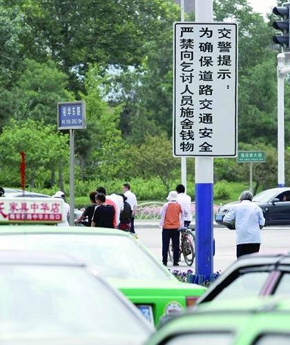 石家莊“禁止施舍”交通牌現街頭 市民各抒己見