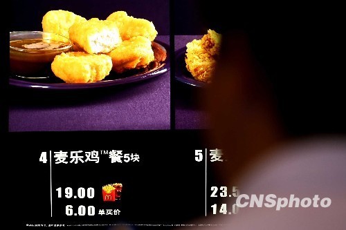 7月7日,一名顧客在麥當(dāng)勞北京一門店選購麥樂雞。近日,世界知名快餐品牌麥當(dāng)勞再次遭遇食品安全質(zhì)疑。有外國媒體報道,在美國麥當(dāng)勞出售的麥樂雞,含有泥膠和石油成分的化學(xué)物質(zhì)。對此,麥當(dāng)勞中國有限公司發(fā)出聲明稱,在中國麥當(dāng)勞售賣的麥樂雞中聚二甲基硅氧烷、特丁基對苯二酚兩種物質(zhì)的含量完全符合現(xiàn)行國家食品添加劑使用衛(wèi)生標(biāo)準(zhǔn),對消費(fèi)者的健康無害。 中新社發(fā) 富田 攝