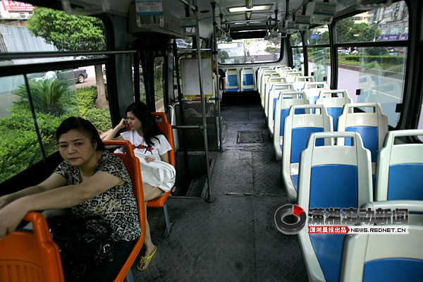 29日,長沙市最高溫達(dá)到36℃。各路公交車在日頭下跑,車上乘客也不見少。