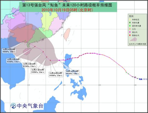 今年第13號(hào)超強(qiáng)臺(tái)風(fēng)“鲇魚”已于10月18日20時(shí)在菲律賓呂宋島北部減弱為強(qiáng)臺(tái)風(fēng),18日22時(shí)前后進(jìn)入南海東部海面。19日05時(shí)強(qiáng)臺(tái)風(fēng)“鲇魚”的中心位于南海東部海面上,就是北緯16.8度,東經(jīng)118.8度,中心附近最大風(fēng)力有15級(jí)(50米/秒),中心最低氣壓為945百帕。
