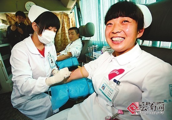 昆明醫務人員紛紛卷卷袖子,開始上陣獻血。