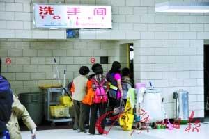 拱北口岸寬敞的公廁門口也經常看到女士排長龍上廁所的情形。