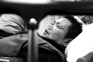昨日下午4時,王守浩躺在協(xié)和醫(yī)院的搶救室內,鼻孔插著氧氣管,手上打著吊瓶。
