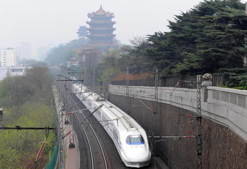 武漢至上海的D3012次動(dòng)車(chē)組經(jīng)過(guò)武漢黃鶴樓下駛上武漢長(zhǎng)江大橋。新華社記者 程敏 攝(資料圖)