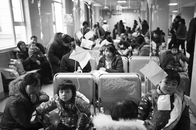今年1月4日,湖北省襄陽市第一人民醫院兒科輸液中心擠滿了前來打點滴的患兒及陪同的家長。 龔 波攝。ㄙY料圖片)