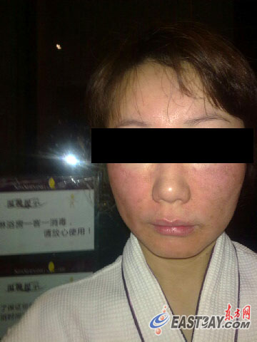 當(dāng)晚8點(diǎn)多,葉小姐突然感到面部皮膚發(fā)癢,長出紅疹。第二天情況越發(fā)嚴(yán)重,臉部還有些腫,她便在下班后趕去詩泥SPA會(huì)所。美容顧問查看情況后,認(rèn)為葉小姐只是有點(diǎn)過敏,“她說做清潔和冷噴處理后,兩三天即可消退,并強(qiáng)調(diào)不需要去醫(yī)院診治。”隨后兩天,葉小姐都如約去SPA會(huì)所做清潔冷噴處理,但過敏情況不但沒有好轉(zhuǎn),反而愈演愈烈。“到后來整張臉都紅腫,甚至面部輪廓也有些變形,奇癢無比,我根本無法正常上班、正常休息。”回憶起當(dāng)初的遭遇,葉小姐仍有些激動(dòng)。