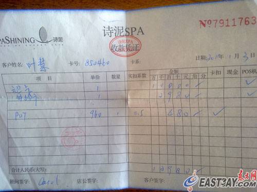 葉小姐是位于浦東金橋商業(yè)中心的詩泥SPA會(huì)所的老顧客。去年底,美容顧問向她推薦了一種PDT光能靚膚療程,“據(jù)稱是通過紅藍(lán)光譜的照射,加快皮膚真皮層細(xì)胞代謝能力,促進(jìn)膠原蛋白再生。”葉小姐說,自己當(dāng)即對這個(gè)陌生項(xiàng)目的效果表示懷疑,但對方稱保證安全、無副作用,并稱可以對折價(jià)格預(yù)約體驗(yàn)一次。考慮到這家SPA會(huì)所在上海有多家門店,“應(yīng)該比較有實(shí)力”,葉小姐就動(dòng)了心,當(dāng)即支付了480元的體驗(yàn)款。