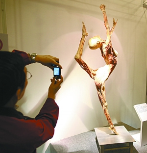 走過擺出體操動作的女性人體標(biāo)本,市民王先生說,這就像一堂令人震撼的生物課。