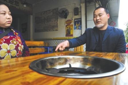 那天晚上11點(diǎn)過,我和老婆帶著侄兒到為民路的一家牛雜火鍋店吃飯。剛吃一會(huì)兒,一個(gè)男子走進(jìn)來,在店里晃了起碼10分鐘,始終不坐下。