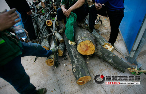 長沙勞動路。電鋸轟鳴,梧桐樹果毛紛揚。