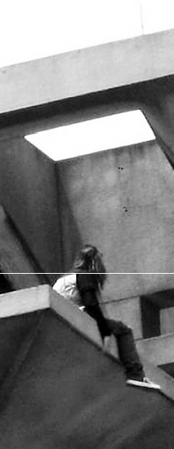 坐在頂樓邊緣的秋月。網友“jaypan1987”拍攝