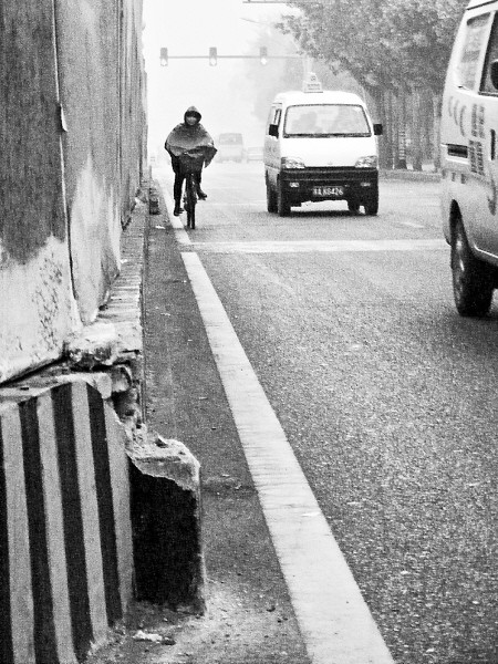 昨天下午,記者來到蓮湖路,在事件發(fā)生的蓮湖公園北側(cè)馬路上,記者看到除了地鐵工地外圍墻底部有兩處因碰撞出現(xiàn)的磚塊破裂痕跡外,再也找不到其他的痕跡。
