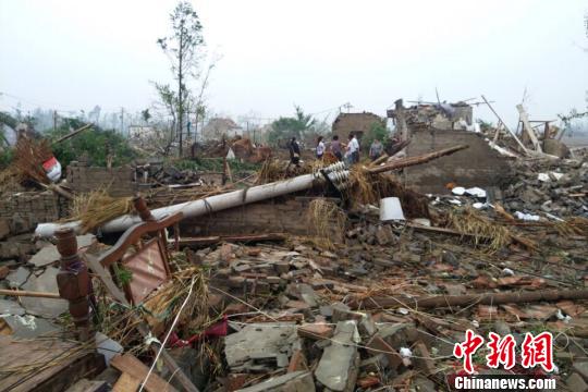 23日中午,江蘇鹽城市阜寧、射陽兩地突遭龍卷風、冰雹、雷雨大風、短時強降水和強雷電等強對流災害天氣。突如其來的旋風將樹木、電線塔、房屋紛紛刮倒在地。雞蛋大的冰雹砸中人們和停在馬路上的汽車,報警器的聲音和人們的呼救聲亂成一團。