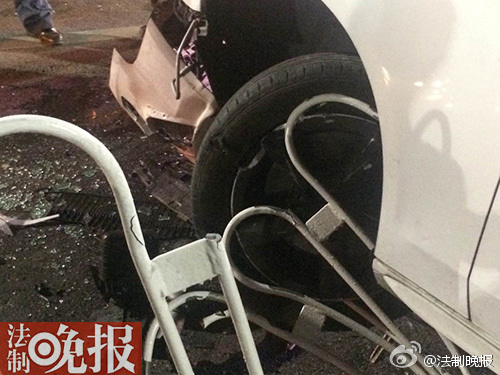 奧迪剮護(hù)欄后正撞對(duì)面車 車主棄車而逃