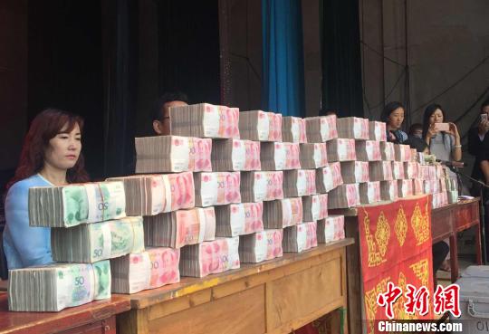 27日,甘肅臨洮縣機場村廣場,圍滿了前來排隊領錢的村民,村支書邊國勝向村里的80余戶農民現場發放種植樹苗分紅現金560萬元,最多的農戶領到10萬元分紅。