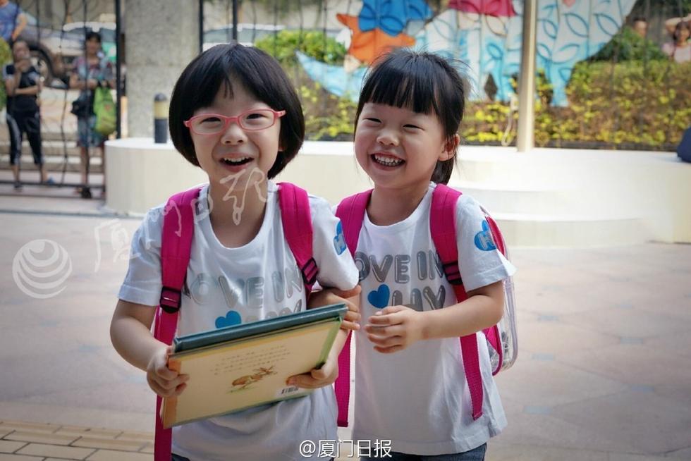 實拍萌娃開學表情 有人開心有人耍酷有人一臉無辜
