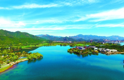 藍天白云下的雁棲湖空氣清新、美如畫卷。本報特約攝影卜向東