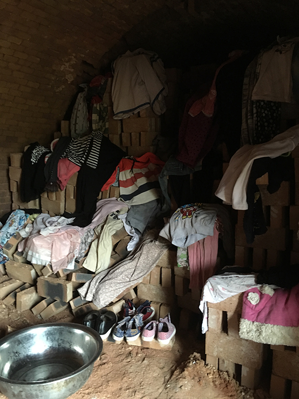 9月4日,盛恒磚廠內的其中一個磚窯,走進窯中時熱烘烘的暖流迎面撲來,里面還晾曬著女人和小孩的衣物。