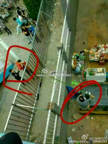 據@駐馬店生活消息,“自從去年冬天一個企業在泌陽縣第二高級中學蓋起食堂后,該校學生放學后自由出入校園、在校外購物、就餐的機會就被剝奪了。數千名學生的校園只保留一個小賣部,學生每日也只準出入校園一次,且不得帶食物入校。”因不滿學校食堂的餐品及價格,許多學生選擇隔墻購買校外的食物。此種校外購食物的舉動,引起了學校不滿,為了迫使學生停止與校外商戶交易,校方不僅派老師,近期又花錢在原院墻外2米處,再焊起一圈鐵柵欄。于是,“長桿”隔雙墻交易的場景發生了。