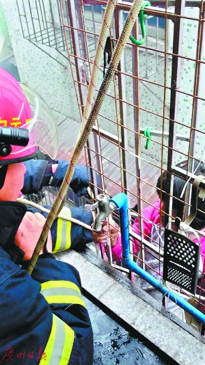 于是,消防員趕緊剪斷鎖頭,打開安全門,將打好繩結的安全繩逐一遞交給男子,讓他給女兒和自己做好安全保護。隨后,在安全繩的牽引保護下,消防員將父女倆先后救出。“為了保護女兒,那位爸爸的背部和兩臂外側有受傷,被燒得發紅脫了皮。而女兒穿著外衣,幾乎沒有受傷。”