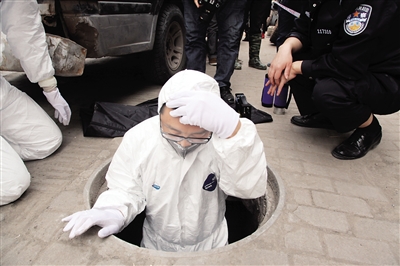 法醫進入下水道尋找證物。警方供圖