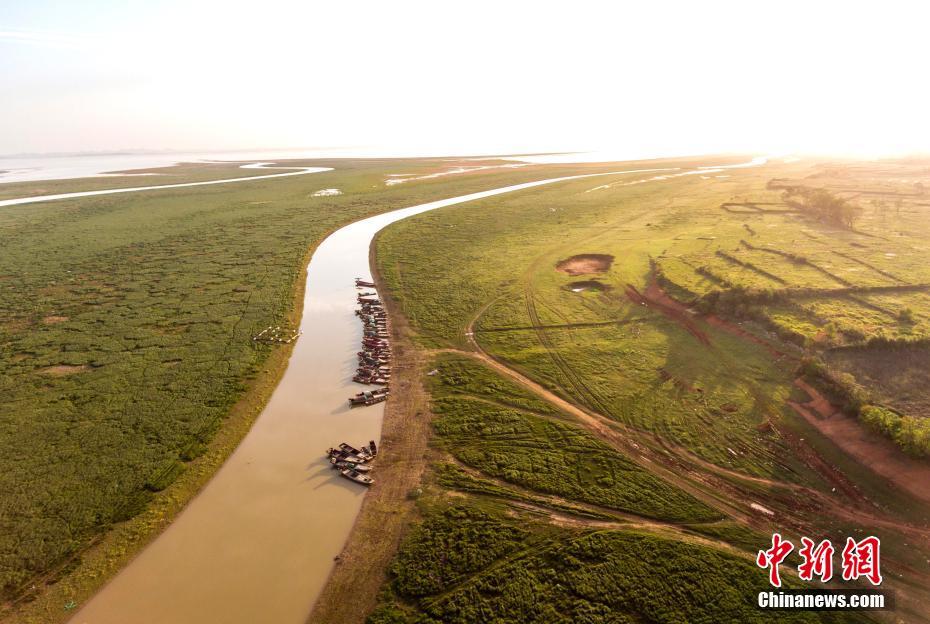 鄱陽湖是中國第一大淡水湖,為典型的季節性湖泊。11月28日,航拍江西鄱陽湖都昌境內冬季水系。當上游五河(饒河、贛江、信河、修河、撫河)水系流經都昌縣境內時,水面漸漸變得開闊,形成了鄱陽湖上的帶狀水系景觀,在冬日呈現出玉帶環繞、澤豐水美的壯麗風景。傅建斌 攝
