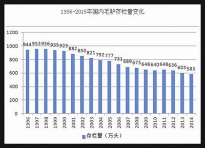 原料驢皮的短缺,是促使阿膠漲價的根本原因。根據(jù)國家畜牧統(tǒng)計年鑒顯示,毛驢存欄量已由上世紀(jì)90年代的1100萬頭下滑到500多萬頭,并且還在以每年超過3%的速度下降。