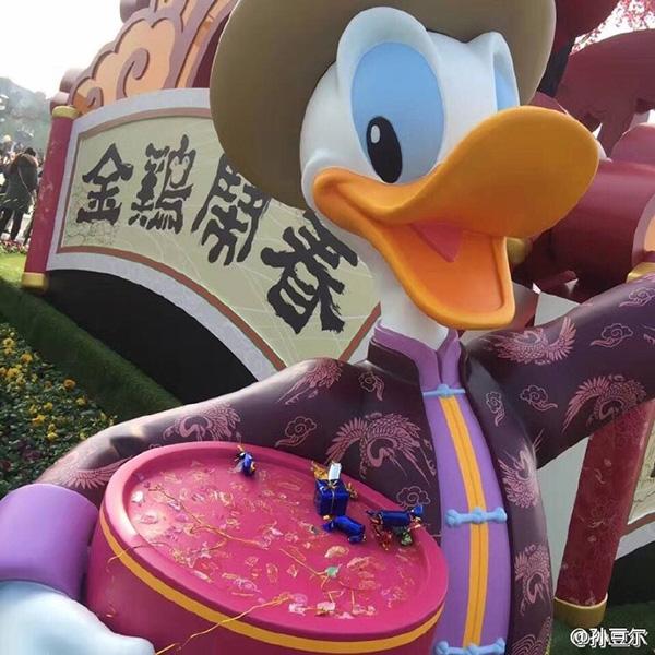 近日,微博網友 @孫豆爾爆料,由于春節將至,上海迪士尼在城堡前弄了一個“金雞鬧春”的景觀供游人互動拍照。本來是挺好的一件事,偏偏有人把唐老鴨手上的糖果弄下來拿走了!