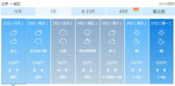 上周的北京暖意融融,春天似乎已經(jīng)近在咫尺,然而昨日的一場(chǎng)冷雨,打亂了北京進(jìn)入氣象意義上春天的步伐。根據(jù)未來(lái)7天天氣預(yù)報(bào),北京本周仍以多云到陰為主,周三、周四、周五或還有降水天氣過(guò)程,其中周五的最高氣溫或降至5℃,最低氣溫則有可能被打回0℃,寒意明顯。