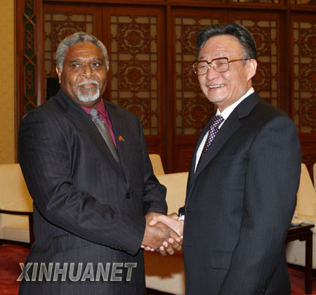 新華社北京2月25日電(記者徐松)全國(guó)人大常委會(huì)委員長(zhǎng)吳邦國(guó)25日下午在人民大會(huì)堂會(huì)見了瓦努阿圖議長(zhǎng)阿沃克。