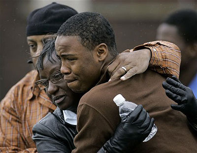 學(xué)生家長(zhǎng)在得知發(fā)生槍擊案后,紛紛趕到學(xué)校打聽(tīng)孩子的下落。由于警察仍在校內(nèi)進(jìn)行調(diào)查,他們只能在校外等候。學(xué)生們走出校園后,不少人淚流滿面,和家長(zhǎng)擁抱在一起,也有人雙手顫抖地?fù)艽蚴謾C(jī)和家人聯(lián)絡(luò)。